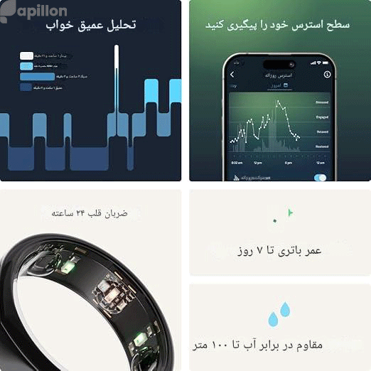 • طراحی زیبا و نامحسوس: به دلیل فرم حلقه، استفاده از آن راحت بوده و به طور نامحسوس داده‌ها را جمع‌آوری می‌کند.