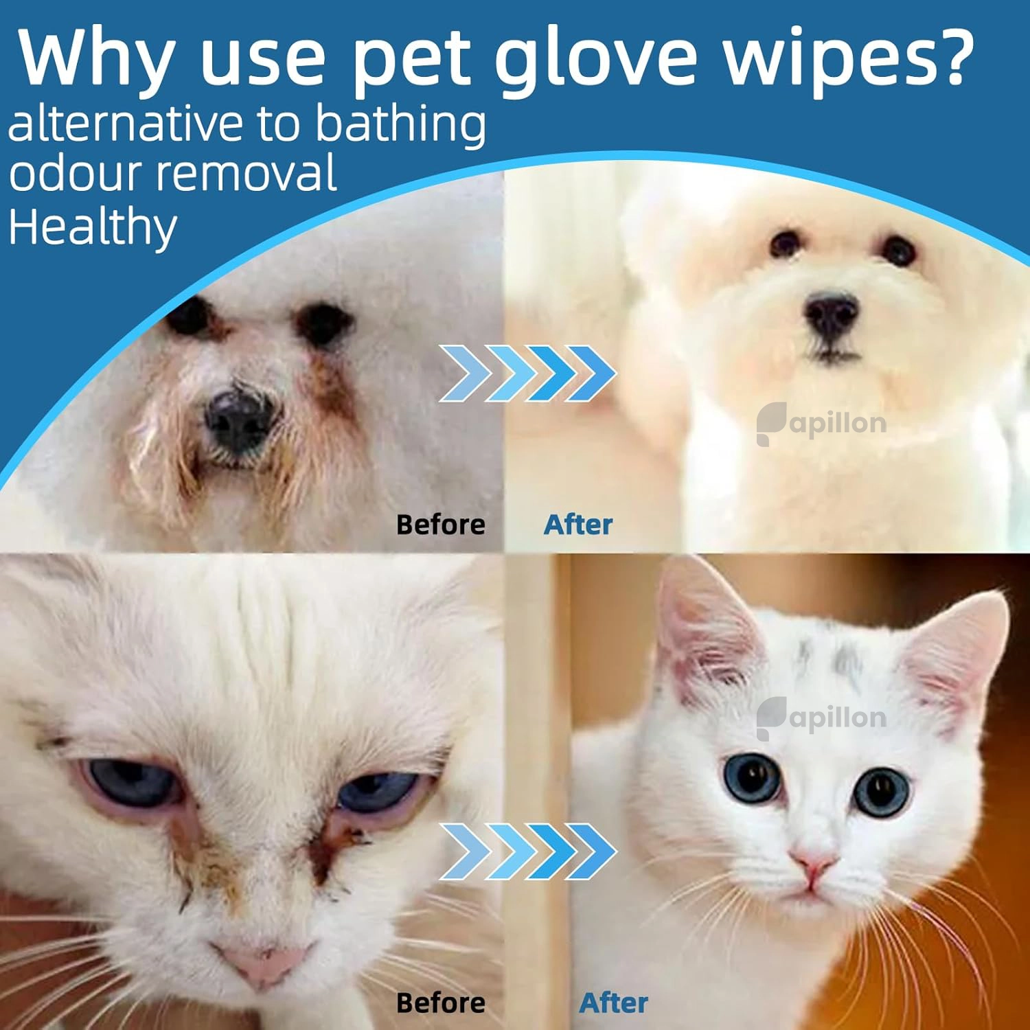 با استفاده از این دستکشهای مرطوب، دیگر نیازی به حمام بردن حیوان نیست! فقط کافیست یک دستکش را بپوشید و بدن، پنجهها، گوش، چشم یا حتی نواحی حساس را تمیز کنید.