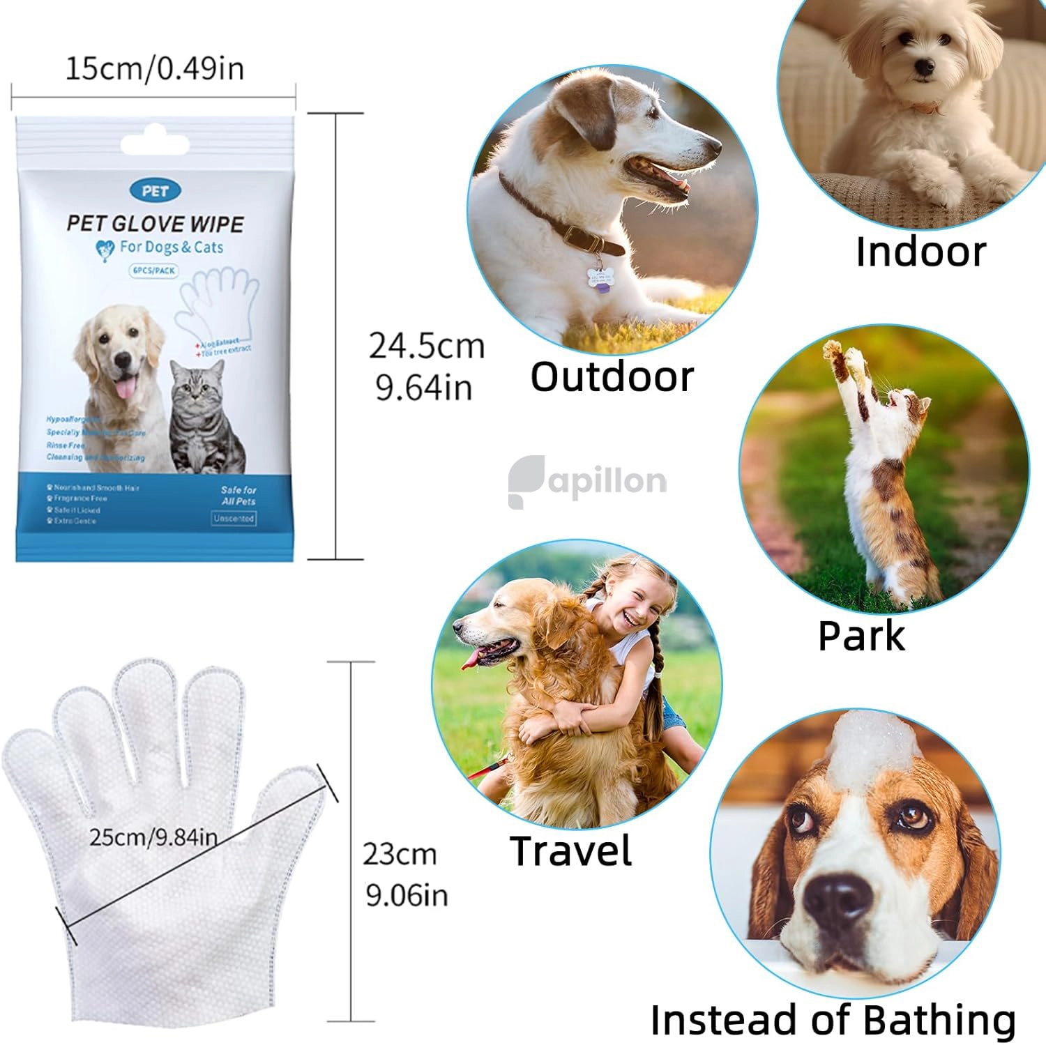 دستمال مرطوب دستکش شستشوی حیوانات (6 عددی) | بدون نیاز به شستوشو، ضدبو و مناسب سفر
