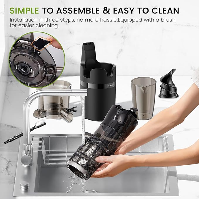 با طراحی حفاظتی، لطفاً قبل از استفاده اطمینان حاصل کنید که نصب در محل مناسب قرار دارد، در غیر این صورت این مایع‌ساز میوه کامل نمی‌تواند راه‌اندازی شود. این دستگاه با دو فنجان و برس تمیزکننده همراه است. مونتاژ، استفاده و تمیز کردن آسان. ایده‌آل برای خروجی بالا و تفاله خشک.