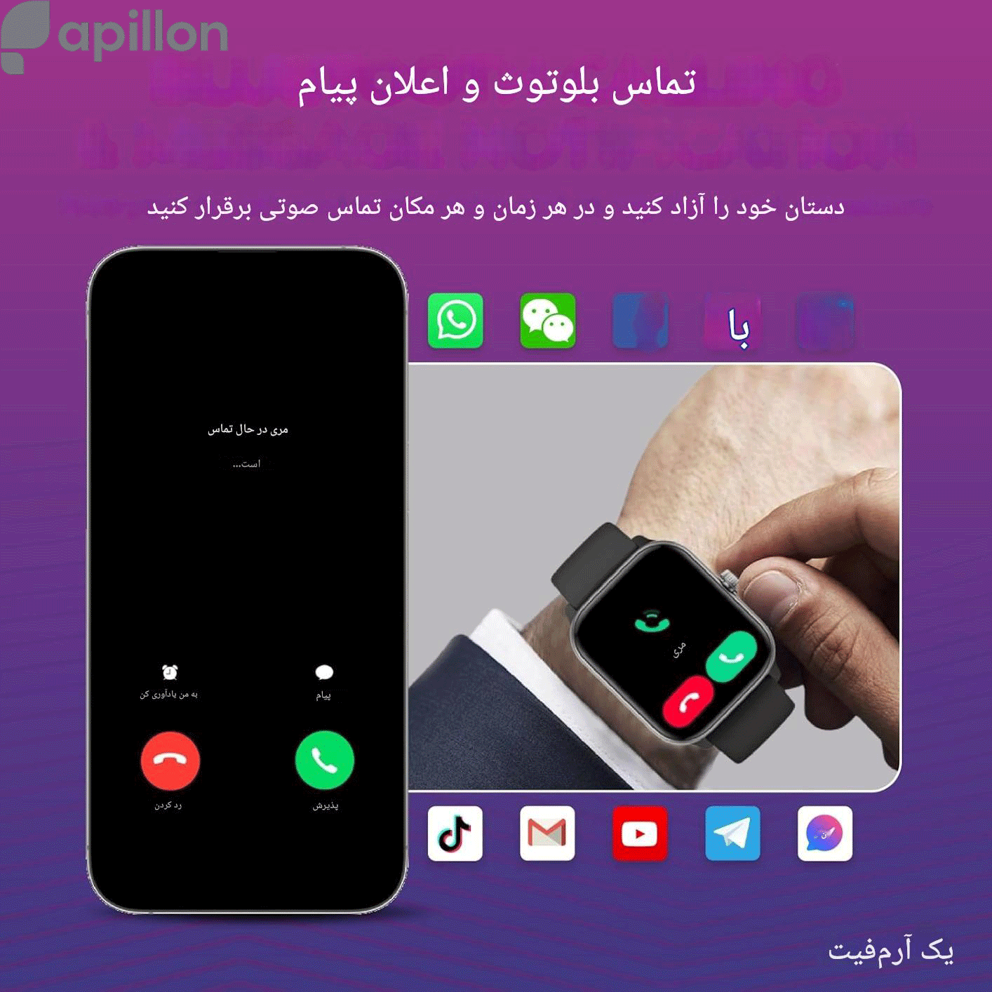 پشتیبانی از تماس بلوتوثی و امکان پاسخگویی مستقیم از روی ساعت