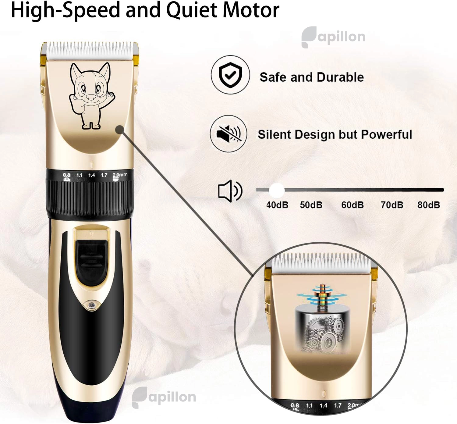 🐾 ست کامل اصلاح حیوانات Highdas | کمصدا، شارژی و مناسب موهای فر و حیوانات حساس | رنگ طلایی