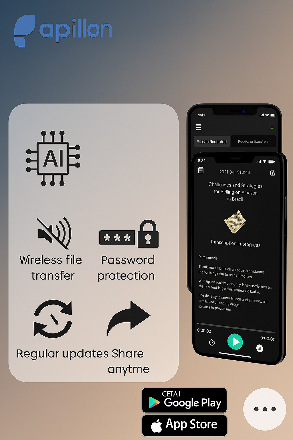 ضبطهای خود را به اپلیکیشن منتقل کرده و از ویژگیهای پیشرفته آن مانند ترجمه و خلاصهسازی استفاده کنید.