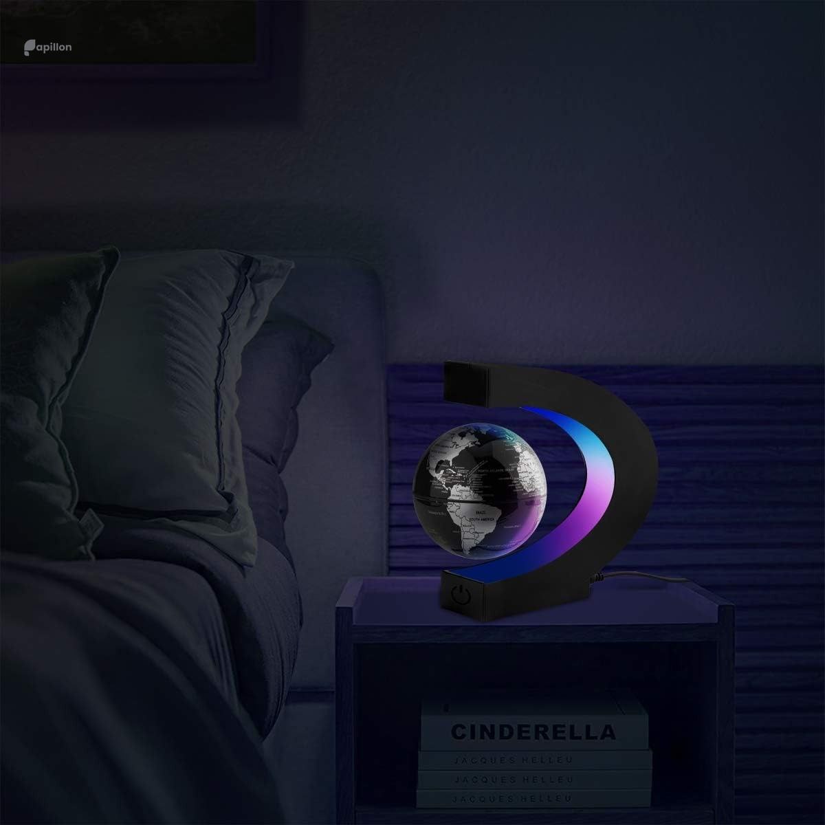 • دکوراسیون لوکس و مدرن: چراغ کره زمین معلق مغناطیسی، به هر محیطی شکوه و جذابیت می‌بخشد. طراحی پایه‌ی C شکل با خطوط منحنی و مدرن، مکمل زیبایی محصول است.
