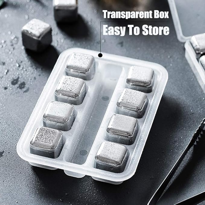 سنگ‌های یخی استیل ضدزنگ برای خنک کردن نوشیدنی – بسته ۸ عددی